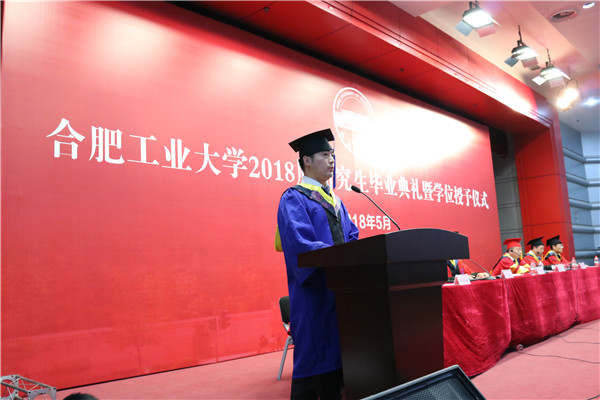 随后导师代表发言,学海无涯,何处为径?三年中,苦乐相伴,学识渐增;三年后,学业已就,宏图在胸。博士、硕士在你们的人生中可能只有一次,你们要为自己的努力而骄傲,为自己的坚强而自豪,为丰富多彩的人生而喝彩。