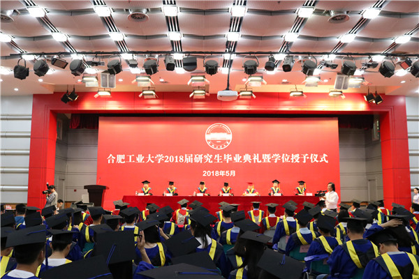 5月4日上午,伴随着国歌声的响起,水果派解说 2018届研究生毕业典礼暨学位授予仪式在屯溪路校区东风报告厅拉开帷幕,校党政领导以及学校相关部门、各学院领导出席此次毕业典礼,共同祝贺工大18届研究生顺利毕业。