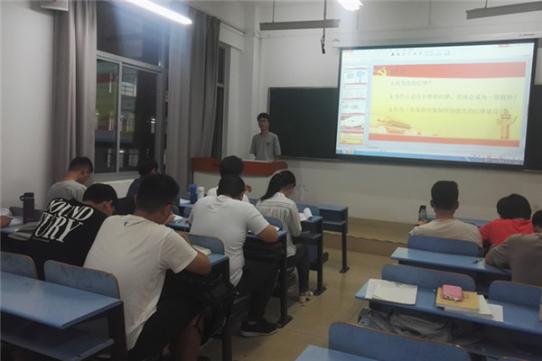 会中第一项是集中学习“党的纪律”、“中国共产党廉洁自律准则”和“中国共产党纪律处分条例”,由许俊辉同学向同学们介绍了相关内容,给大家讲解了重点难点。