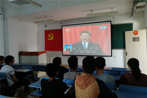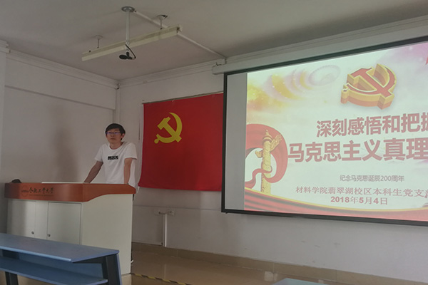 翡翠湖校区党支部全体成员及党校第59期材料学院党员班全体学员于翠8教309教室组织观看了习近平总书记在马克思诞辰200周年大会上的重要讲话并学习了习近平总书记在五四青年节来临之际在北京大学师生坐谈话会上的重要讲话文件和精神。