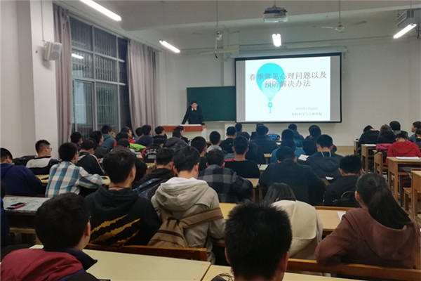 大学生春季心理健康排查工作,提升心理健康教育三级网络建设,发挥心理委员、寝室心理联络员在心理危机排查、干预中的基础作用。3月23日晚,材料学院在翠3教207教室组织开展了 “春季常见心理问题预防及解决办法”的专题培训。17级心理委员、寝室心理联络员等近100人参加了此次培训活动。