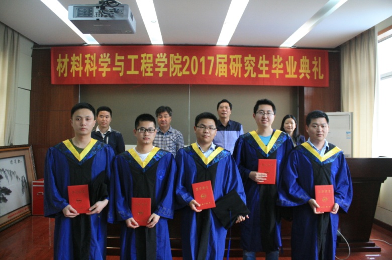 2017届研究生毕业典礼在材料楼601会议室顺利召开。材料学院党委书记程继贵教授、院长张久兴教授、副院长吕珺教授以及研究生导师代表项宏发教授、程和法教授、汤文明教授、杜晓东教授和2017届全体毕业研究生参加了此次典礼。