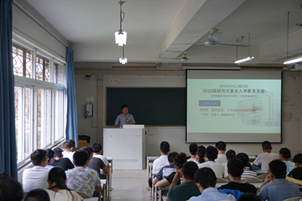 程继贵发表主题为理想信念、学术诚信和创新教育的讲话,程书记强调研究生应将个人发展和国家富强、民族振兴联系起来,志存高远,在机遇和挑战中确定自己的理想,施展自己的抱负,以所学为所用,为成为社会主义事业的合格建设者和可靠接班人努力奋斗;另一方面,研究生阶段要以创新的思想进行科学研究,抵制学术造假行为。