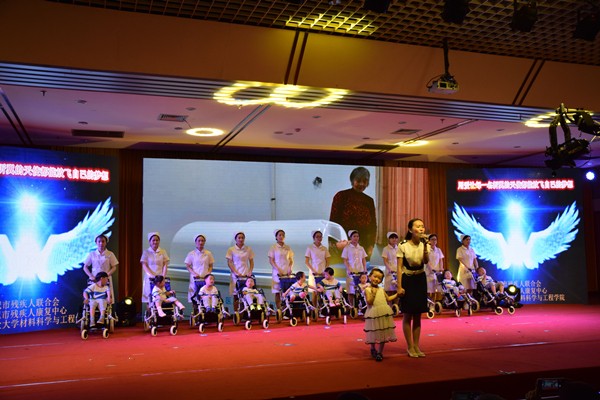 春晖社志愿者们对残疾儿童们爱的表达。舞台上,残疾儿童们充满活力的姿态,脸上如花朵般灿烂的笑容,展现了孩子们身残志坚、自强不息的精神品质,虽然表演过程中会有五音不全、举止笨拙,但他们表现出来对美好未来的追求和执着打动了在场的所有观众,获得了观众们阵阵热烈的掌声。