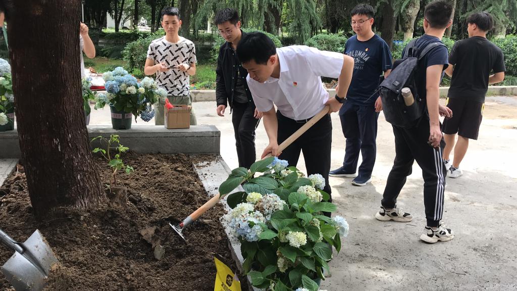 为庆祝中国共产党建党100周年,在党史学习教育中结合学校关于“爱校荣校”和“我为群众办实事”的要求,充分发挥劳动教育在立德树人中的重要作用,5月27日上午10时,材料学院机关党支部与本科生第一党支部联合开展了以“师生党员齐种花,爱校荣校办实事”为主题的党日活动。