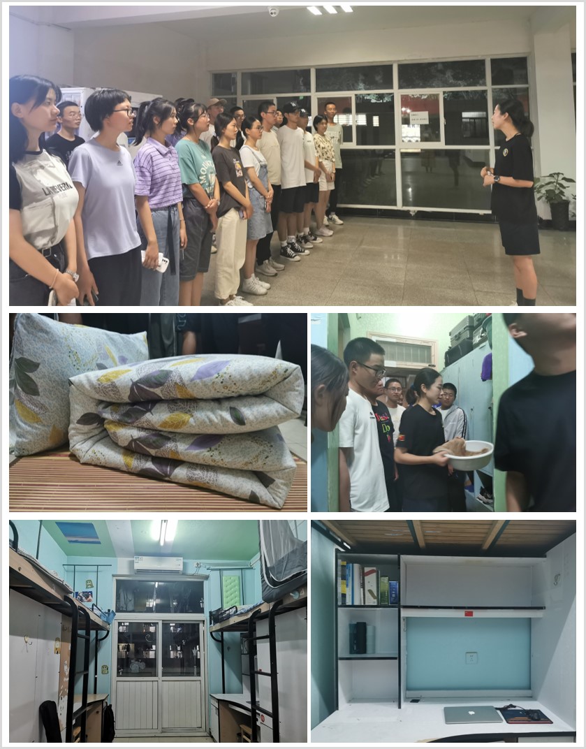 随后,冷小小走进学生宿舍进行现场指导,按照部队标准,对被褥叠放、物品摆序等进行了说明,并进行示范性操作。在指导和帮助下,学院打造了两个宿舍样板间。