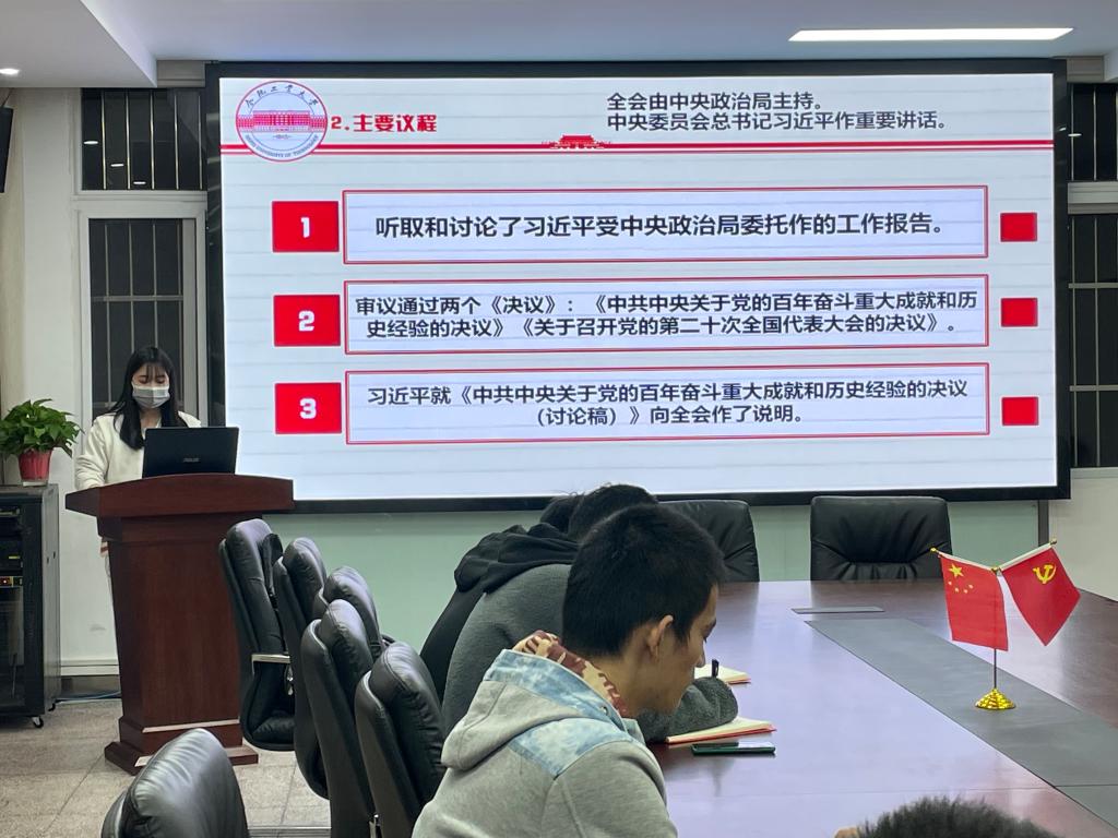 11月26日晚,材料学院研习社联合本科生第三党支部在小红楼会议室开展“学习十九届六中全会精神”专题研讨活动。本次活动由研习社负责人主持,研习社成员及第三党支部全体支委参与活动。