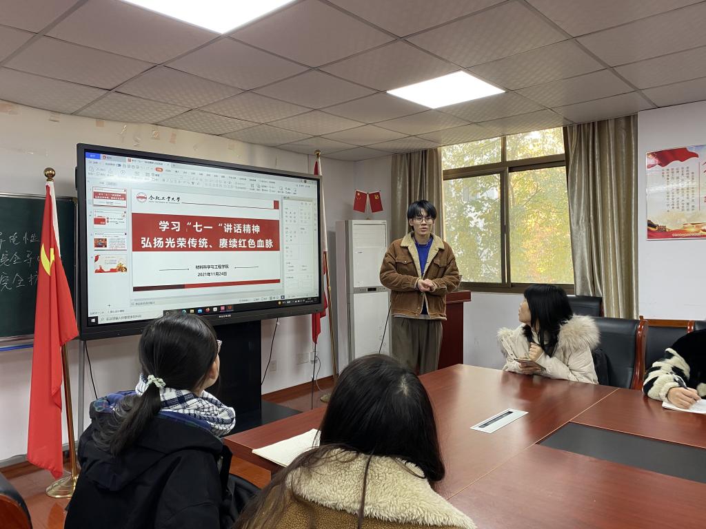 为深入学习贯彻习近平总书记“七一”重要讲话精神,11月24日下午,材料学院开展了以“弘扬光荣传统,赓续红色血脉”为主题的集中学习研讨活动,该院分党校第66期预备党员班全体学员参加活动。