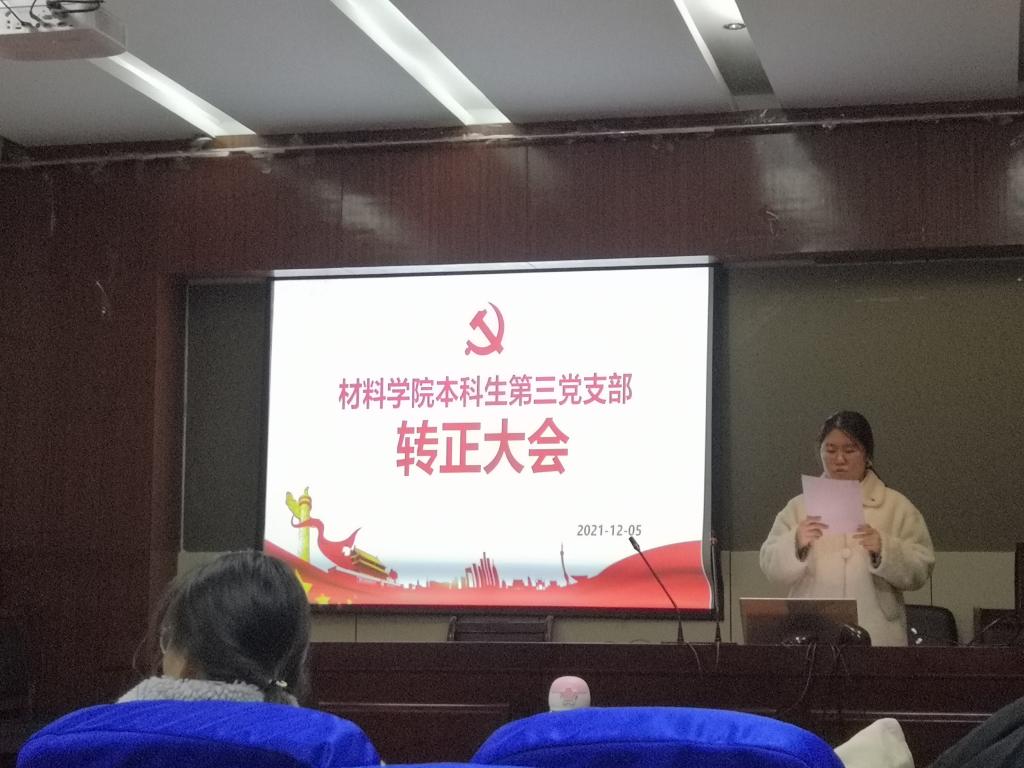 12月6日晚,材料学院在材料楼601报告厅开展“中国特色社会主义进入新时代”党史主题集中学习活动暨预备党员转正大会。