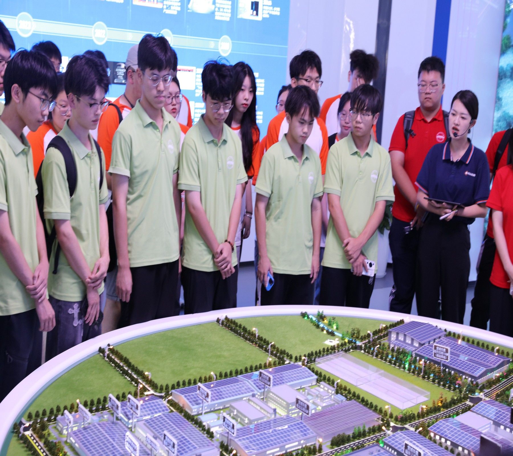 下午,团队前往宣城当地重点能源电池产业——华晟新能源公司参观调研。异质结电池作为第三代光伏电池的代表,赋予了整个行业很大的发展想象空间。在此背景之下,安徽华盛正式成立,专注于异质结电池组件的开发应用以及产品的规模化生产。在讲解员的介绍下,调研团队了解到华晟在新能源光伏电池方面不断突破,在技术,产能,发电量,材料应用方面一直寻求新的极限。