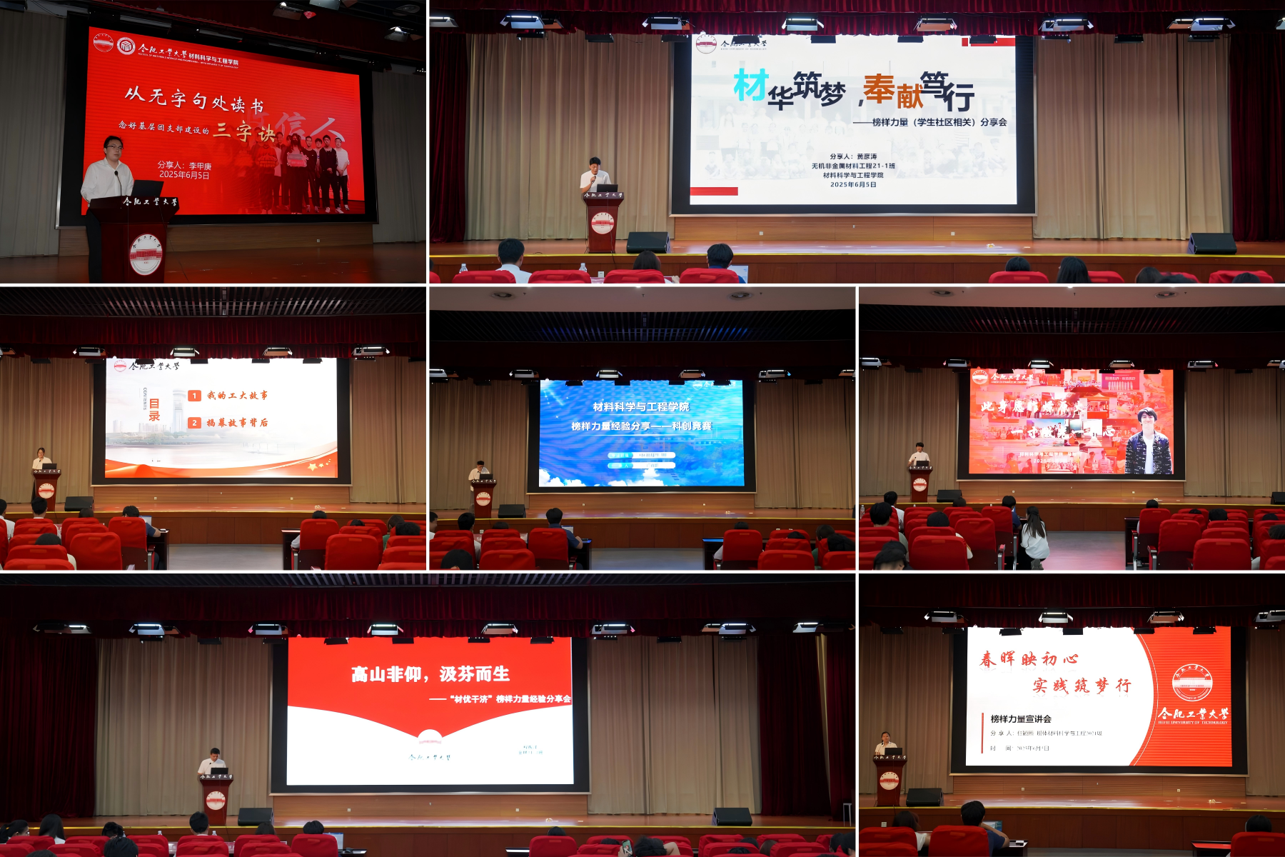 6月5日,材料学院于科教楼二楼大报告厅举办2025年“材优干济”优秀学生事迹分享会,学院2023级、2024级全体学生参会。本次优秀学生事迹分享会邀请到7位2025届优秀毕业生代表围绕升学、基层服务、社会实践、科研创新等主题分享大学四年成长经验,为低年级学生拓宽生涯规划视野。