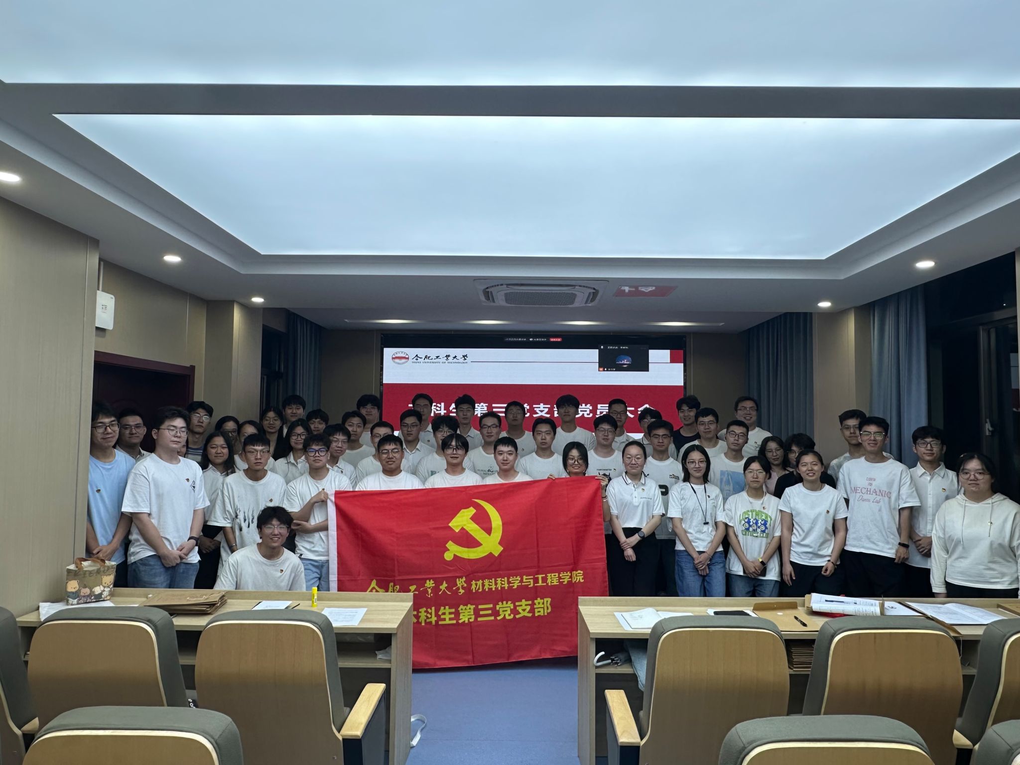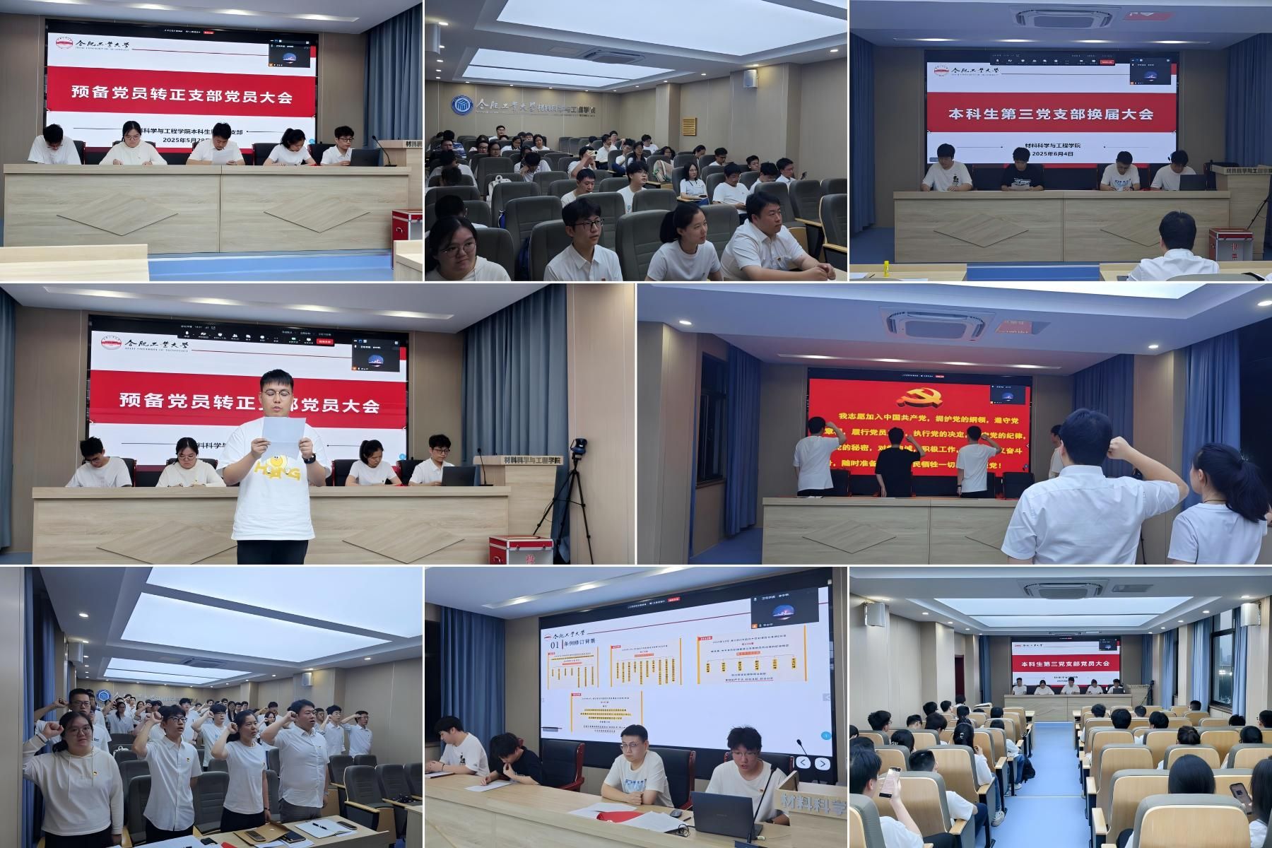 6月4日晚,材料学院本科生第三党支部于屯溪路校区材料楼601召开了2025年上半年预备党员转正暨支委改选大会。支部全体党员50余人参会。
