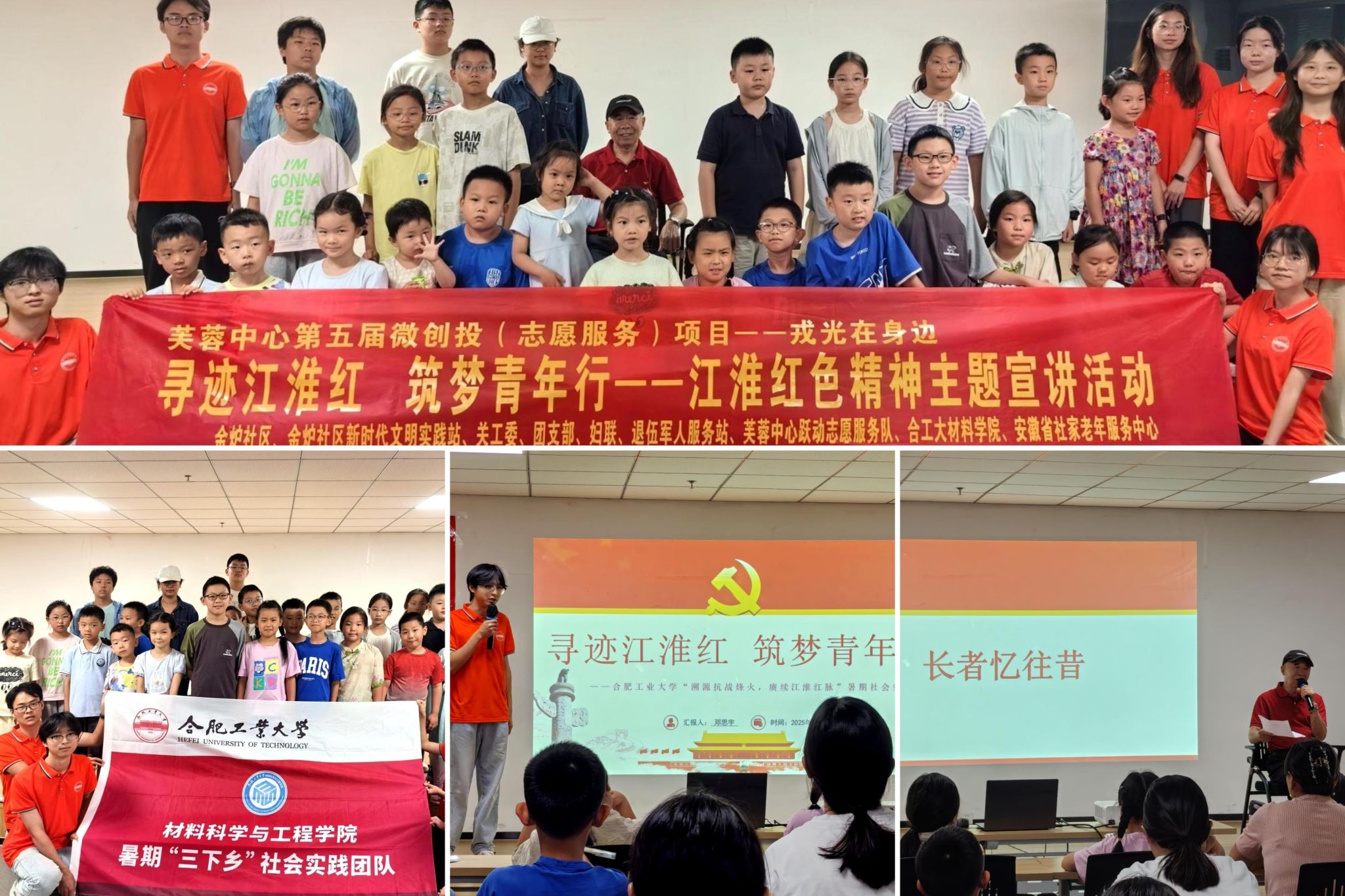 材料学院“溯源抗战烽火,赓续江淮红脉”暑期三下乡实践团队走进芙蓉社区,开展“寻迹江淮红,筑梦青年行”主题宣讲活动。三十余位社区青少年及家长齐聚一堂,让青少年在历史与现实的对话中感悟初心,共同追寻红色足迹,汲取奋进力量。