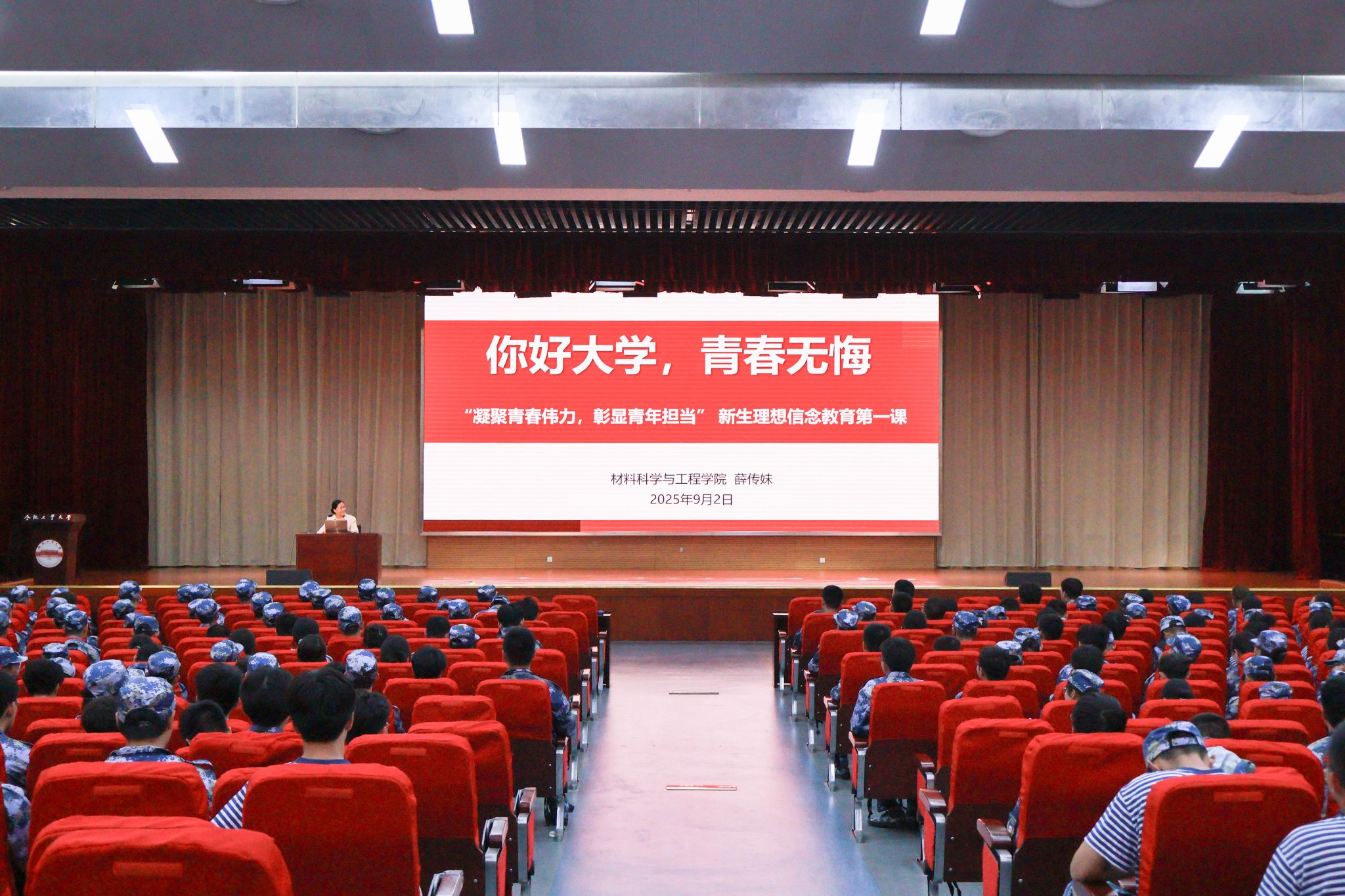 在翡翠湖校区翡翠科教楼二楼报告厅举办“凝聚青春伟力,彰显青年担当”新生理想信念教育“第一课”。学院相关负责人、2025级全体新生参加本次活动。