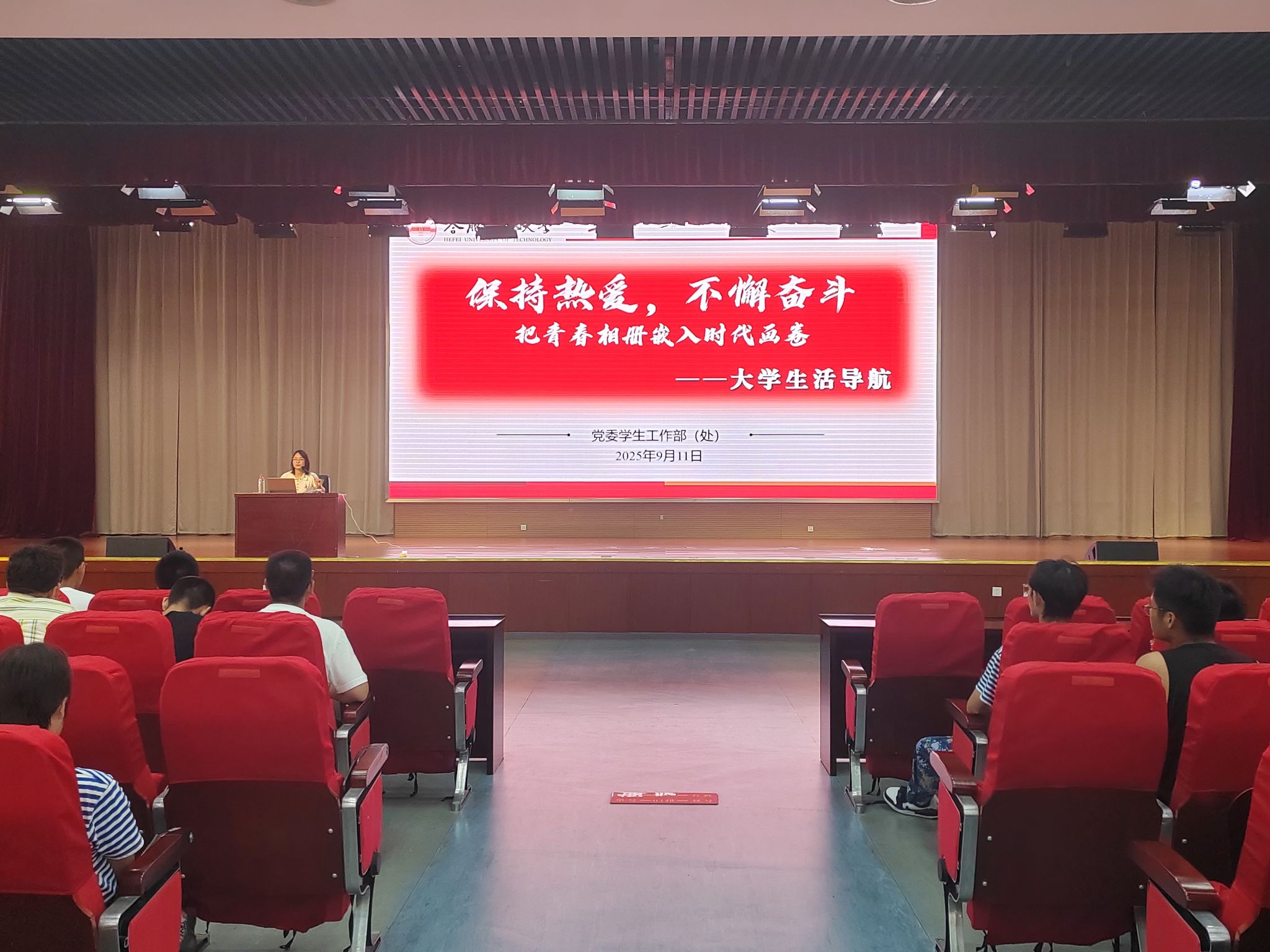 在翡翠科教楼二楼大报告厅以“保持热爱,不懈奋斗”为主题开展大学生活导航宣传报告会。入学教育巡讲团成员、文法学院团委书记宋燕应邀作报告。材料学院全体2025级新生参加本次活动。