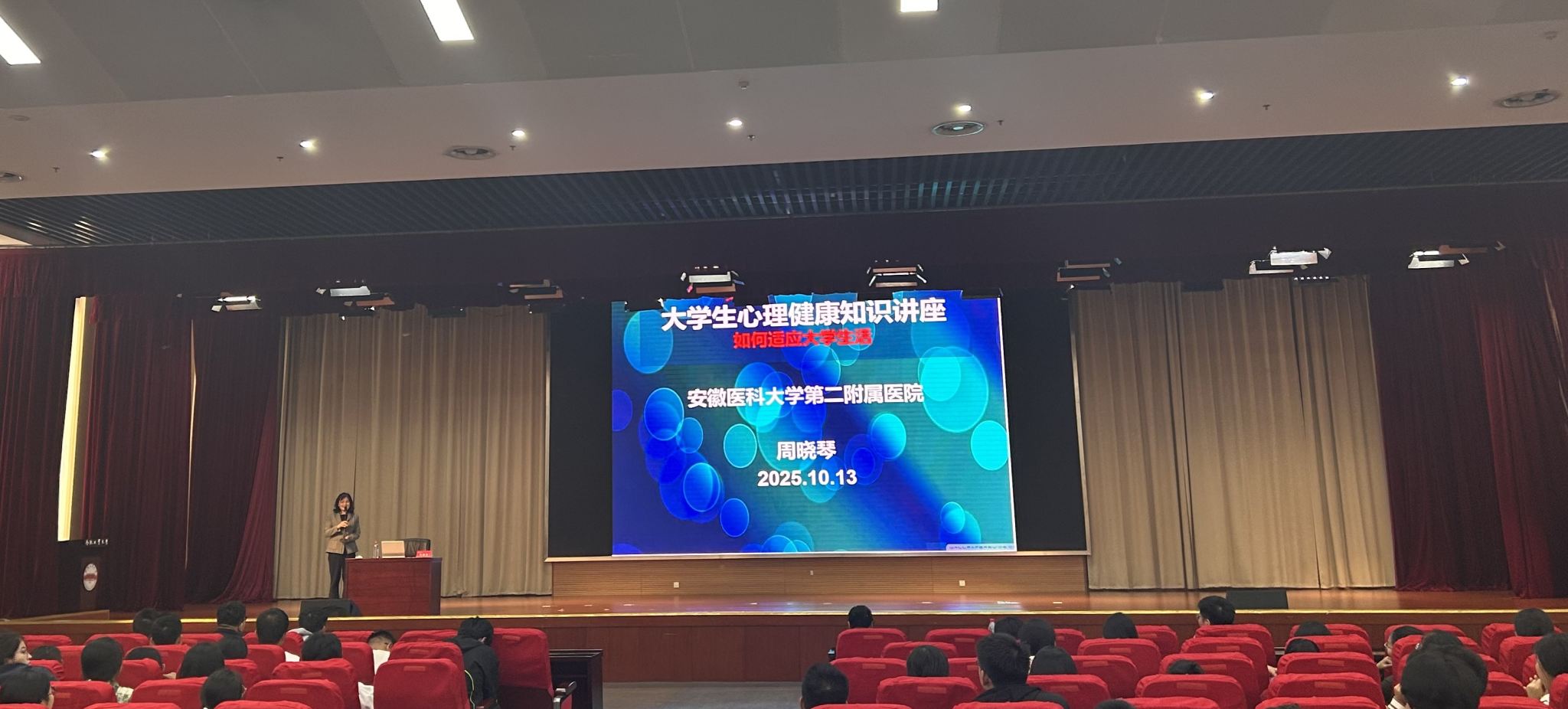 在翡翠科教楼二楼大报告厅开展大学生心理健康知识讲座。安徽医科大学第二附属医院周晓琴主任应邀作报告。材料学院全体2025级同学参加。