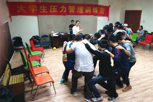 活动在“传数字”游戏中开始,在活动助理的引导下,队员们相互协调,通过用手在后背上敲击的方式传递数字,让大家体会到初始信息理解的重要性,做事要先确定目标,小组之间要团结合作以及在压力情景中如何冷静认真的完成任务。接下来的“压力人椅”活动,在团队领导者发出指令后,各组队员分别围成圆圈,徐徐坐在后面同学的大腿上,比拼坚持的时长,队员之间的相互信任、鼓励以及队员们为团队荣誉所表现出的信念和坚持,让组员们在活动中切实感受到团结的力量。