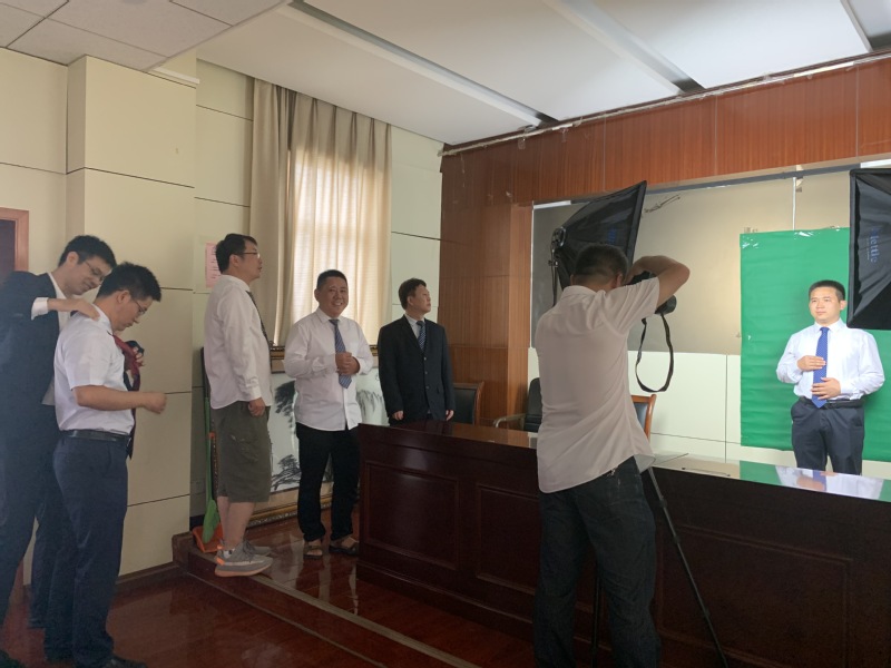 活动当天,工作人员在活动现场支起了简易摄影棚,还为老师们提供西服套装,在拍摄过程中,老师们互相整理衣装,气氛轻松愉快,摄影师耐心地引导老师们展现出最自然的一面,在拍摄中与老师们积极沟通,调整姿势,一系列服务得到了老师们的一致好评。