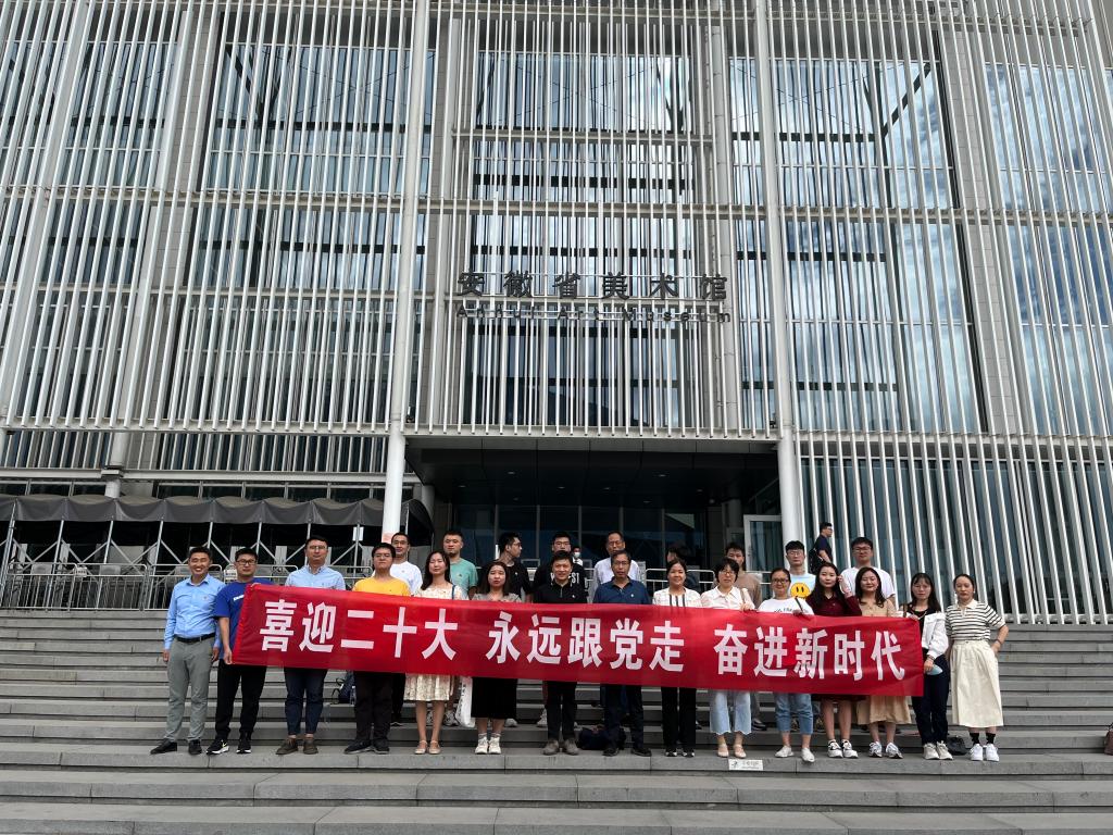 9月21日下午,材料学院机关党支部联合材料学党支部前往安徽省美术馆开展“喜迎二十大 永远跟党走 奋进新时代”主题党日实践活动。材料学院机关党支部全体党员、材料学研究生党支部学生党员参加了本次活动。