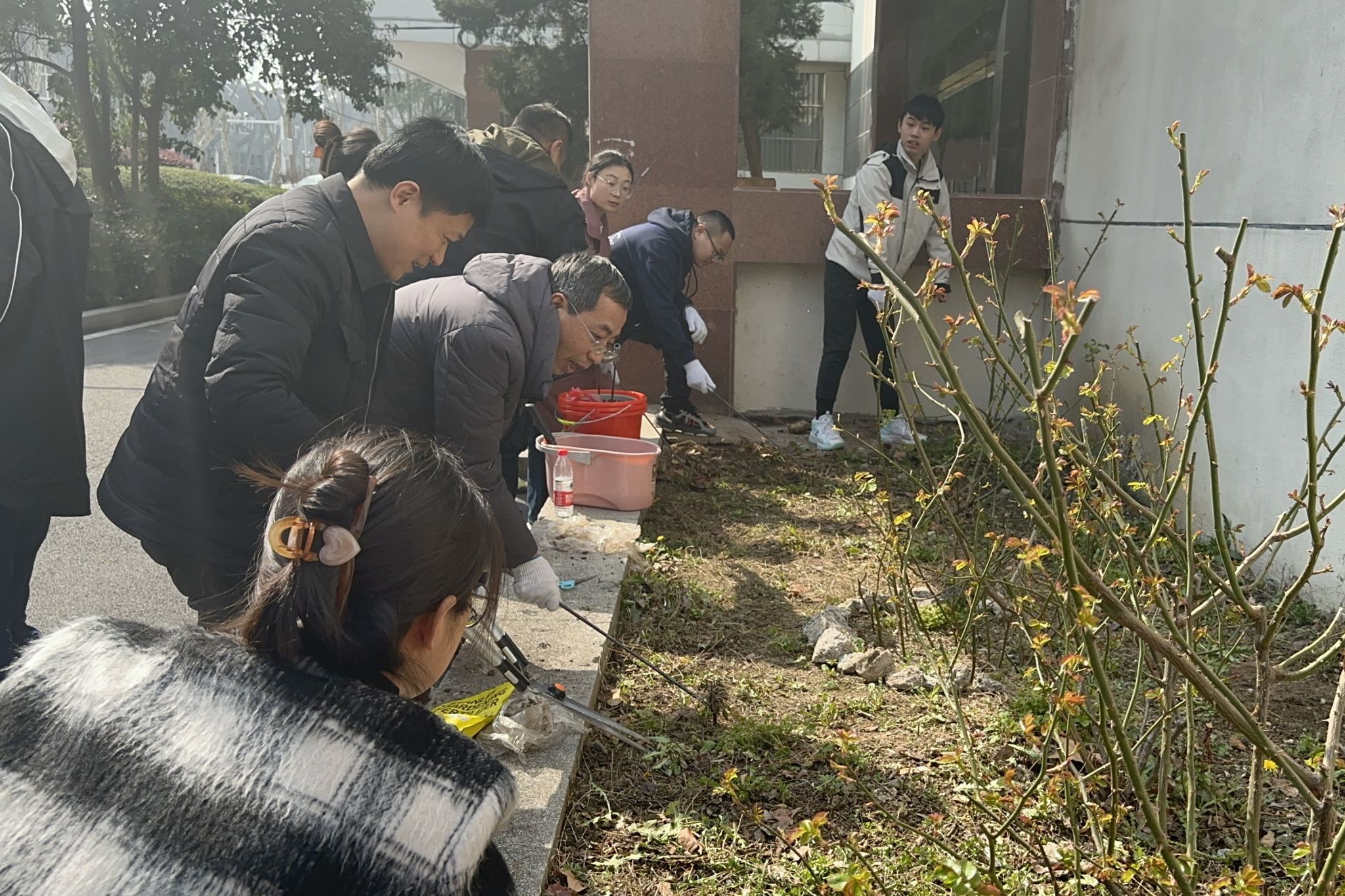 时值仲春,万木生发。在全国第46个植树节当天,材料学院机关党支部和本科生第二党支部师生在材料楼花圃前共同开展了栽培月季的植树活动。学院党委相关负责人参加了植树活动。