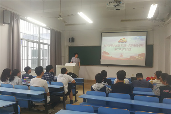 5月15日下午,材料学院(翡翠湖校区)分党校第61期2017级入党积极分子班全体成员于翠六教110教室组织开展主题学习交流活动。